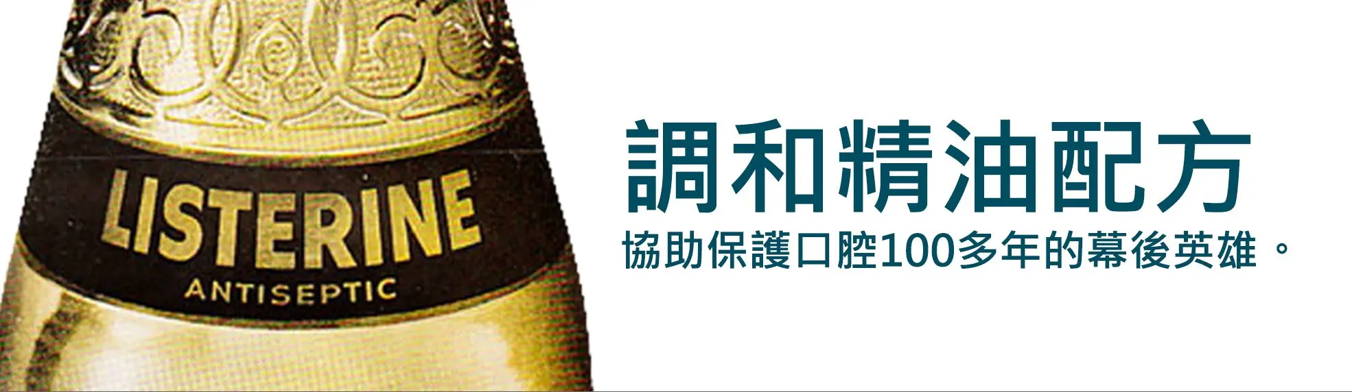 LISTERINE®──1879 年,Joseph Lawrence 醫師和 Jordan Lambert 以四種精油研發出一種很有效的新消毒劑:桉葉油、薄荷油、百里酚以及水楊酸甲酯。他們將產品命名為 “LISTERINE®” 來向現代消毒劑之父約瑟夫.李斯特醫師致敬。
