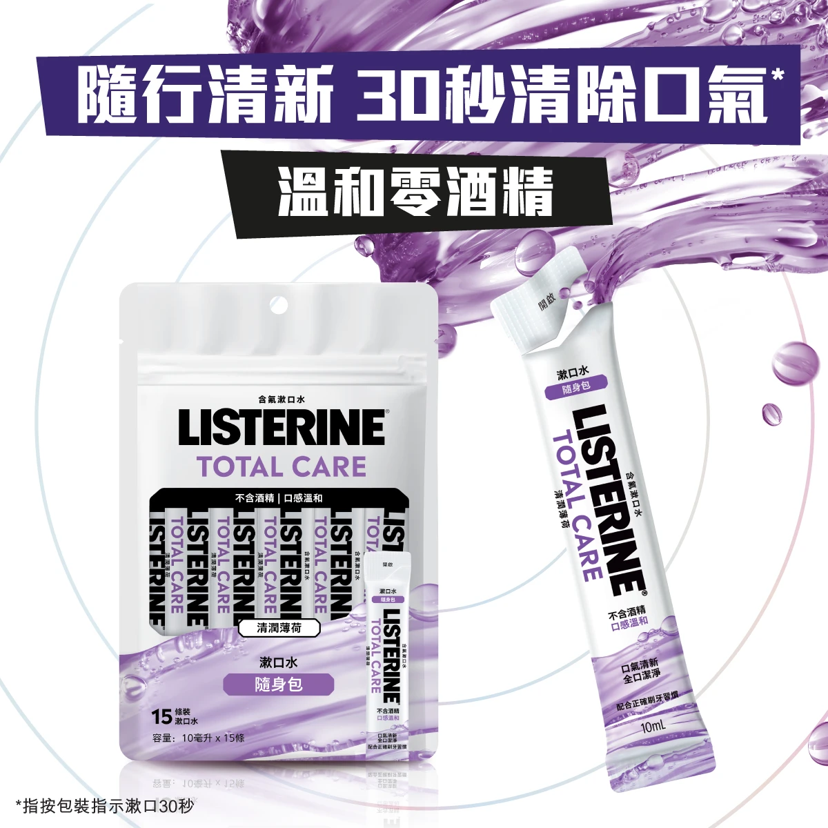 隨行清新 ,30秒深入清潔,有助去除口氣異味,隨時隨地清新口氣。